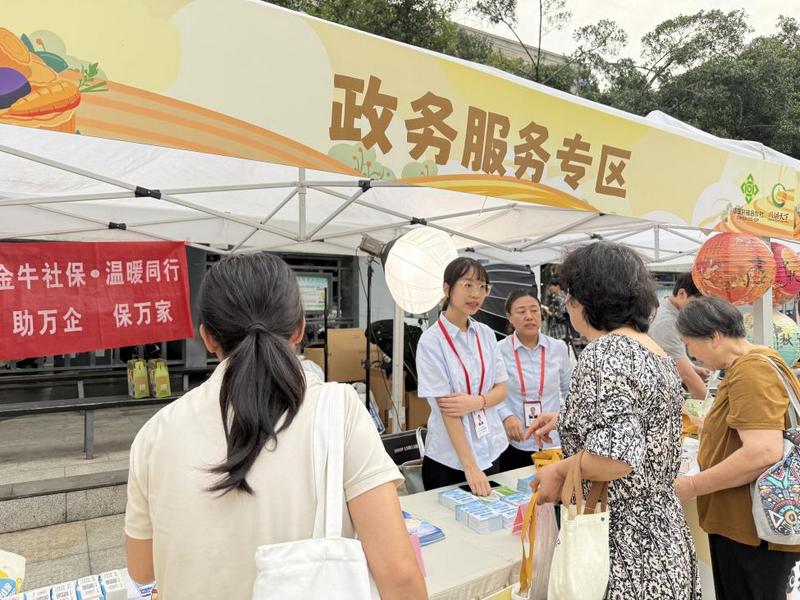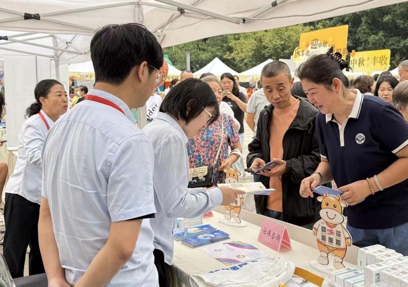 依托省供销社“川供集市”人气旺、近社区的独特优势,将社保、医保等高频政务服务窗口前移至市集现场,直接面向市民提供政策宣传、业务咨询与办理服务。市民在逛集市、购特产的同时,即可享受“一站式”便民服务。现场发放办事指南,以清晰图解、通俗语言详细介绍了各项业务的办理流程,真正实现“服务送上门、办事零距离”。