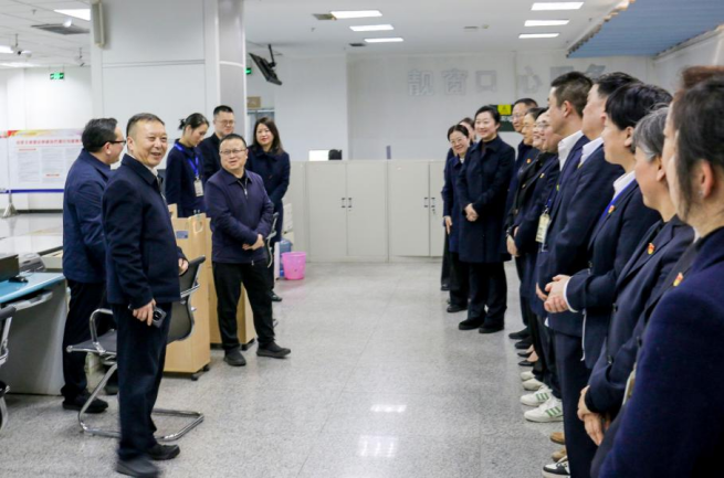 慰问中,陈凯与赵启斌就市场监管政务服务工作进行深入交流,并代表省局党组感谢省政务服务和资源交易服务中心长期以来对市场监管窗口工作的大力支持。同时,对窗口工作人员过去一年克服困难、坚守岗位、热情服务所展现出的韧劲与成效给予充分肯定。